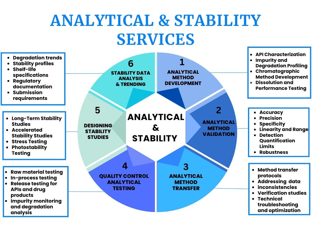 In regulatory submissions, Analytical and Stability services are essential in way that regulatory agencies require thoroughly documented and scientifically supported data, product quality, analytical dependability and long-term stability before they are licensing pharmaceutical products.